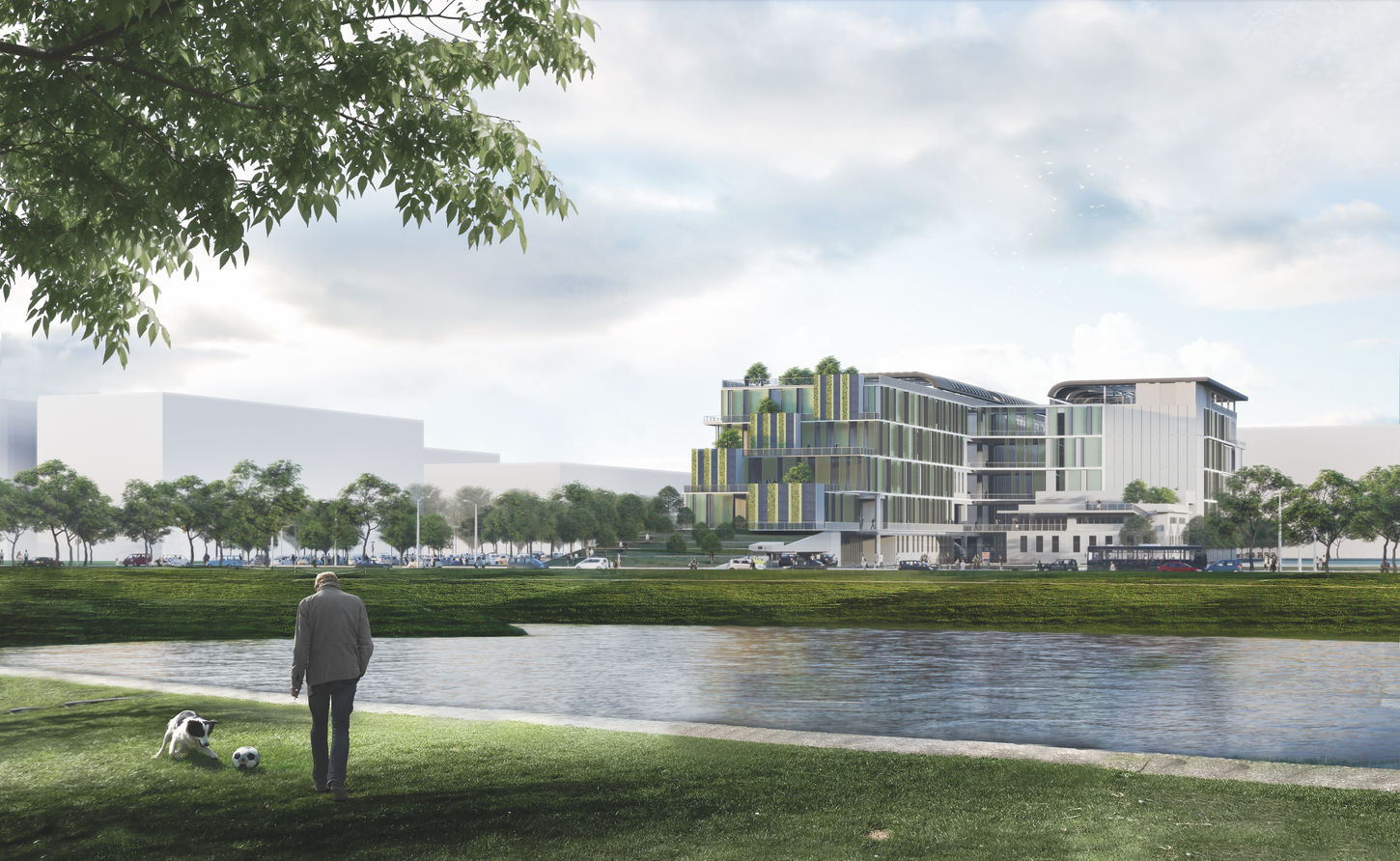 本案也同時挑戰,將未來園區的使用狀況,配合周遭綠帶及生態滯洪池,將氣氛效果一併呈現,提供整體園區的願景想像。